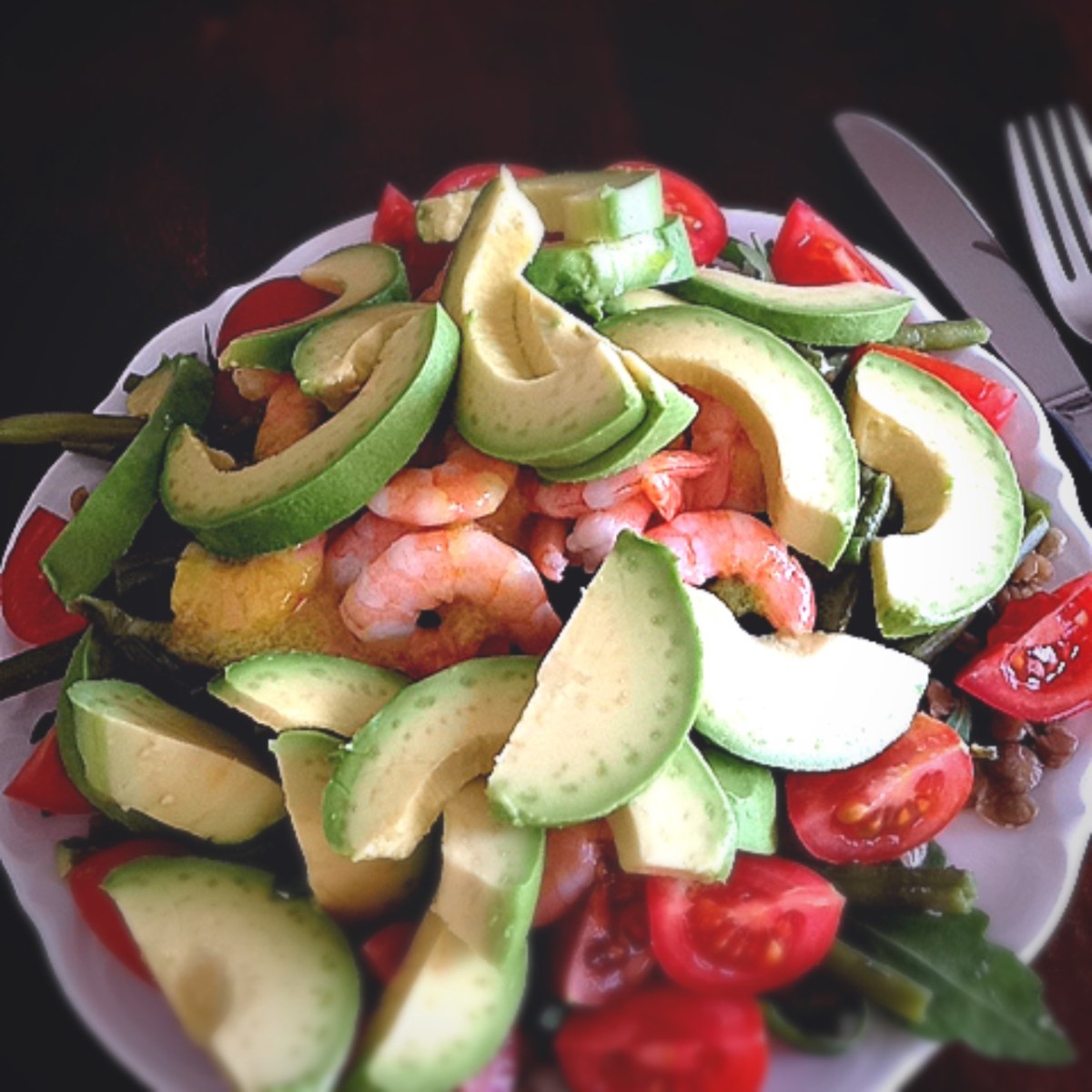 Avocadosalat mit Garnelen und in der Tiefe vergrabenen Linsen 20. April 2015 von Antje Thiel Hinterlasse einen Kommentar ← Vorheriges Bild In diesem Salat verbirgt sich auch eine ordentliche Menge Linsen, aus der Draufsicht natürlich nicht erkennbar…