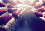 Die Zutaten für den Teig in einer Schüssel mixen (Reihenfolge scheint egal zu sein), aus der Vanilleschote natürlich das Mark herauskratzen, nicht die ganze Schote reinwerfen. Die Konsistenz des Teiges ist fest und klebrig. Den Teig auf dem Boden einer gefetteten und mit Paniermehl leicht eingestäubten Springform (Durchmesser 26 Zentimeter) ausbreiten und bei 180°C ca. 20 Minuten lang backen. Den Rhabarber in Stücke schneiden, zusammen mit etwas Wasser (ca. ½ Glas voll), der Tagatesse und dem Vanillemark auf dem Herd in einem Topf köcheln lassen, bis die Rhabarberstücke schön zerfallen sind. Ich lasse auch die ausgekratzten beiden Vanilleschoten mit köcheln und fische sie dann beizeiten wieder raus. Beiseite stellen und ein wenig abkühlen lassen, dann die Gelatine untermengen und einen Moment angelieren lassen. Sahne steif schlagen und vorsichtig unter die Rhabarbermasse mengen. Inzwischen sollte der Boden fertig gebacken sein. Vorsichtig aus der Springform lösen und (mit Hilfe eines Pfannenwenders o. ä.) auf eine Kuchenplatte gleiten lassen. Sucht am besten eine Kuchenplatte aus, die von ihren Ausmaßen her noch in den Kühlschrank passt, denn ohne Kühlschrank wird die Tortenfüllung nicht schön fest! Dann einen Tortenring um den Tortenboden spannen. Für mich war es das erste Mal, dass dieser schöne Tortenring zum Einsatz kam – und ich muss sagen, das Ding ist idiotensicher. Dann die Crememasse auf den Boden in den Tortenring füllen und glattstreichen. Die Erdbeeren halbieren und sternförmig auf der Torte verteilen. Jedes Stück Torte (insgesamt 12) bekommt dann genau zwei Erdbeerhälften ab. Die Torte ein paar Stunden lang im Kühlschrank fest werden lassen, dann ist sie servierfertig.
