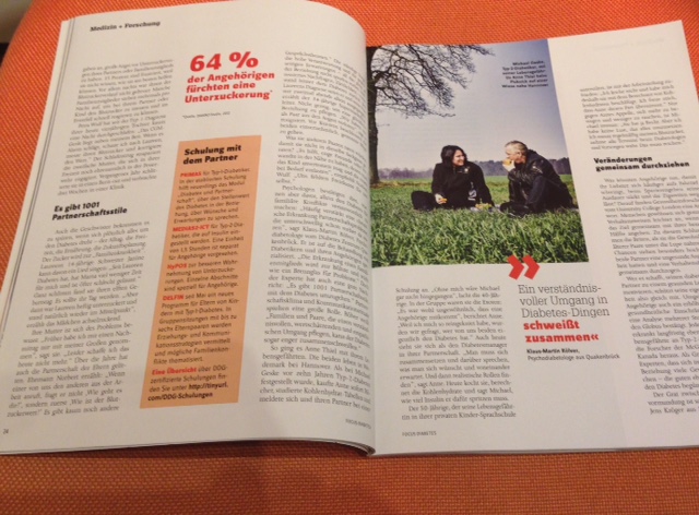 Mit dem heutigen Thema der Diabetes Blog Woche #DBW2015 habe ich mich in diesem Frühjahr bereit intensiv beschäftigt. Da hatte ich nämlich den Auftrag, die Titelgeschichte für den Focus Diabetes zu schreiben. Thema: Diagnose Diabetes – Was Angehörige wissen müssen. Für meine Geschichte suchte ich via Facebook Fallbeispiele: Menschen, die bereit waren, mit mir darüber zu reden, wie der Diabetes ihr Familienleben oder ihre Partnerschaft beeinflusst. Zusätzlich befragte ich Diabetologen und Psychologen, die in ihren Praxen häufig mit familiären Konflikten infolge des Diabetes zu tun haben. Die Gespräche waren intensiv und gingen mir sehr nahe. Sie machten mir unter anderem auch bewusst, wie gut ich in meinen zwischenmenschlichen Beziehungen aufgehoben bin – auch mit meinem Diabetes. Ich habe diese Geschichte bislang noch nicht auf meinem Blog veröffentlicht und finde, das heutige DBW-Thema ist eine gute Gelegenheit, dies nachzuholen.
