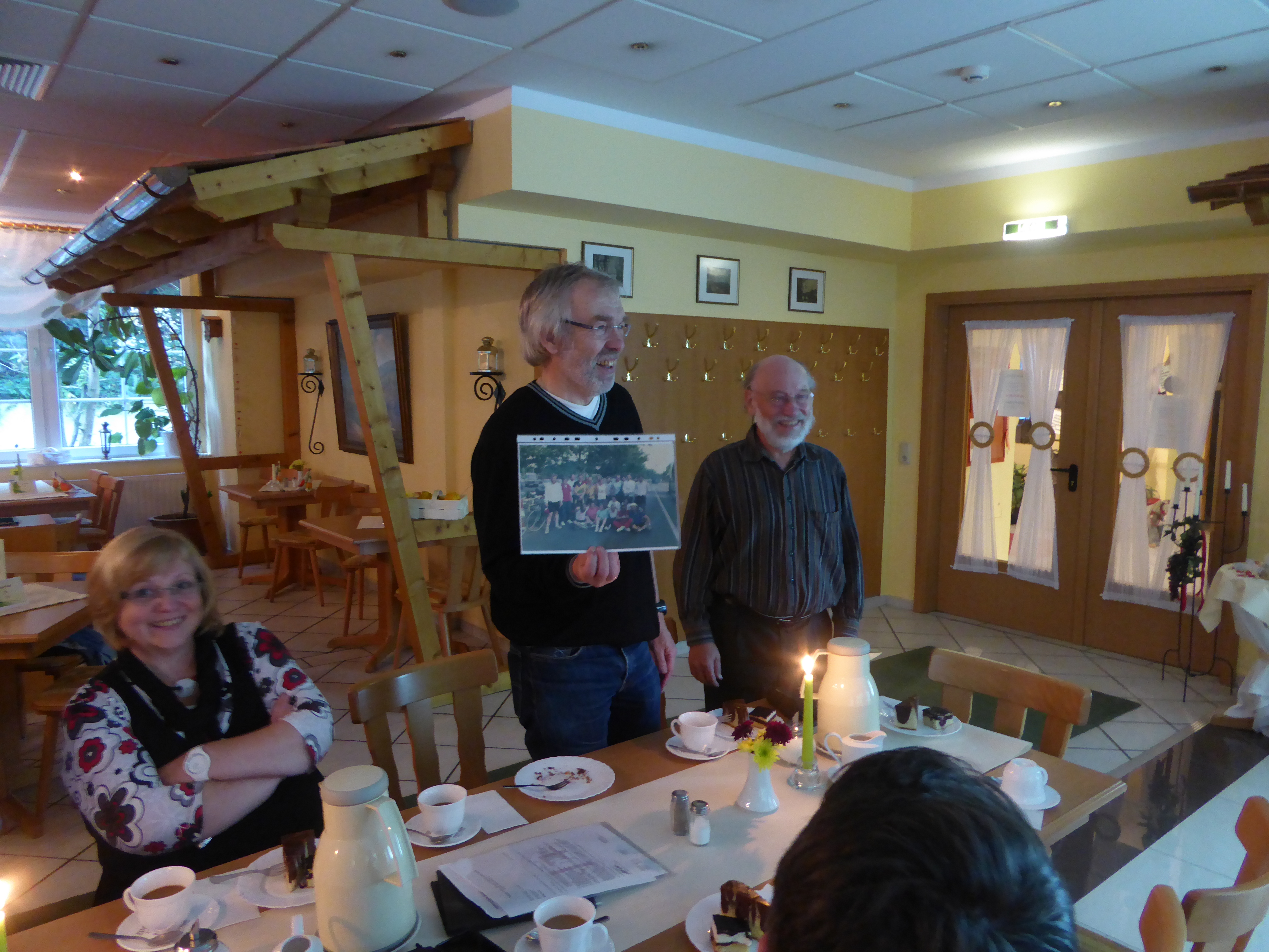 Außerdem feierten wir bei Kaffee und Kuchen (zwingend notwendig für den Muskelauffülleffekt nach dem Lauf!) das immerhin schon 25-jährige Jubiläum der IDAA. Einige der Teilnehmer waren tatsächlich „alte IDAA-Haudegen“ und schon von Anfang an dabei. Sie konnten abenteuerliche Geschichten aus längst vergangenen Jahrzehnten erzählen, die oft von Diabetologen handelten, die angesichts der sportlichen Ambitionen ihrer Patienten erschrocken die Hände über den Köpfen zusammenschlugen. Oder von festen Essenspläne mit absurd niedrigen BE-Rationen, an die sich natürlich keiner von ihnen halten mochte („Was haben wir gegessen! Und was haben wir gespritzt! Wir hatten so viele leere Insulinampullen, dass der Altglascontainer überquoll!“)