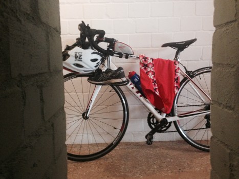 Ab nach Hause und in die Radklamotten wechseln. Mein Zucker war inzwischen auf 137 mg/dl angestiegen, damit lässt sich arbeiten. Ich nahm eine Trinkflasche mit Saftschorle (2,5 KE) mit aufs Rad und vergewisserte mich, dass ich noch genug Notfall-KE in meiner kleinen Provianttasche am Rad habe. Dann ging es los: 21 Kilometer Rennradfahren, zwei Runden über die Nachbarorte Raa-Besenbek, Kiebitzreihe und Horst. An manchen Stellen musste ich ordentlich gegen den Wind anstrampeln. Und wieder machte sich mein Schweinehund bemerkbar. Der wacht nämlich mit Argusaugen über meine Schmerzgrenze. Die verläuft entlang des schmalen Grats zwischen dem Gefühl „hey, es tut gut, meine Muskeln zu spüren!“ und „autsch, das tut jetzt aber weh!“ Schmerzen mag ich nicht, also patrouilliert der Schweinehund gewissenhaft vor dieser Grenze und achtet genau darauf, dass ich sie nicht überschreite. Sein bestes Argument in diesen Situationen lautet: „Denk dran, dass du gleich danach ja noch 5 Kilometer laufen sollst! Überanstrenge dich also nicht!“