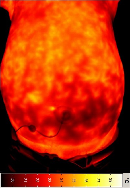 23975 Anam li Unterbauch – Pumpe funkt nicht immer 30. August 2017 von Antje Thiel Hinterlasse einen Kommentar Nächstes Bild → Zum Vergleich dazu ein Bild mit der Wärmebildkamera, das deutlich niedrigere Hauttemperaturen in den betreffenden Arealen zeigt.