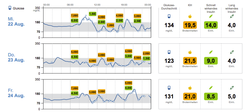 Libre Wochenprofil 2 11. September 2018 von Antje Thiel Hinterlasse einen Kommentar ← Vorheriges Bild Und hier waren die Tage 3, 4 und 5. So viele KH esse ich sonst nie im Leben – und auch mit 4 IE Basalinsulin am Tag komme ich normalerweise nicht aus…