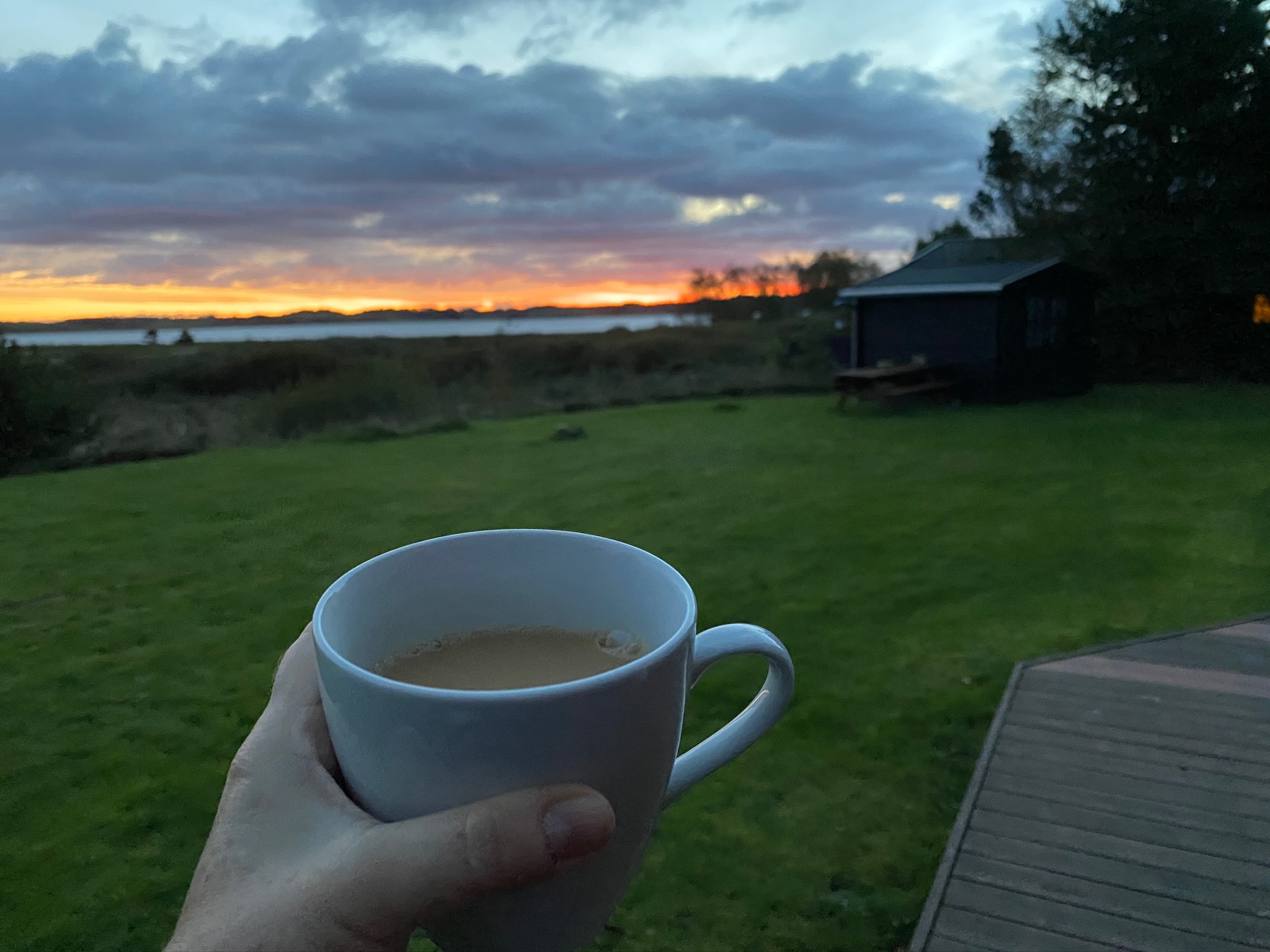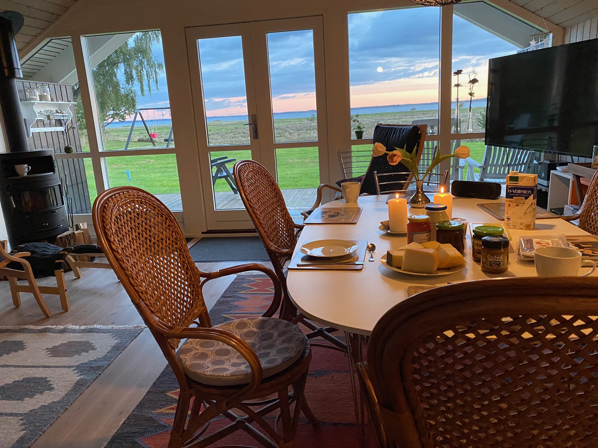 Kaum angekommen, schaltete ich erfolgreich in den Erholungsmodus. Ich freute mich, dass wir ein Ferienhaus mit unverbautem Blick auf’s Wasser ausgesucht hatten. Nachdem ich monatelang wirklich auf Hochtouren gearbeitet hatte, fühlte es sich unendlich gut an, den Blick weiter als auf Monitordistanz schweifen zu lassen. Das Wasser des Limfjords lag einfach da und bewegte sich nicht. Ganz selten schipperte mal ein kleines Fischerboot durch den Horizont, sonst passierte einfach gar nichts in diesem Panorama. Und dann diese Stille! Uns war vom ersten Moment an klar: Dieser Urlaub wird uns richtig guttun.
