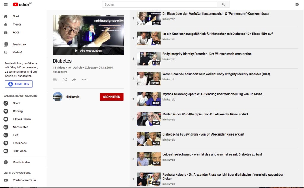 Der Leiter des Diabeteszentrums besteht bis heute darauf, er sei damals nicht wirklich gefragt worden und immer noch nicht begeistert von der ihm zugedachten Rolle. Doch er spielte mit und sprach bei der Videopremiere im Frühjahr 2017 wunschgemäß über die Madentherapie bei chronischen Wunden. Es folgten etliche weitere Filme, etwa zu der Frage, ob Krankenhäuser generell gefährlich für Menschen mit Diabetes sind oder warum Diabetespatienten mit Polyneuropathie bei einem diabetischen Fußsyndrom besser keinen Vorfußentlastungsschuh tragen sollten. Mit seinen Auftritten avancierte der Diabetologe binnen kurzer Zeit zum Social Media-Star.