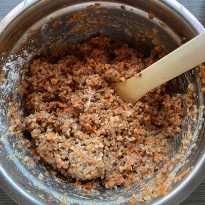 Den Buchweizen in Salzwasser kochen, bis er gar ist (ca. 15 bis 20 Minuten). Währenddessen Möhren und Käse raspeln. Alle Zutaten (bis auf das Öl natürlich) miteinander vermengen, bis sie einen klebrigen, aber formbaren Teig ergeben. Öl in der Pfanne erhitzen, mit den Händen Frikadellen formen und in die Pfanne geben. Von beiden Seiten jeweils ein paar Minuten lang braten, bis die Frikadellen gut gebräunt und fest sind.