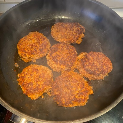 Wir essen zwar gern Fleisch, doch es muss natürlich nicht jeden Tag Fleisch auf den Tisch kommen. Lieber etwas weniger, aber dafür in Bio-Qualität von unserem lokalen Bio-Bauernhof, der uns jede Woche mit unserer Bio-Kiste beliefert. Ich finde es grundsätzlich völlig okay, sich bei vegetarischen Gerichten auch mal an der Machart typischer Fleischgerichte zu orientieren. Allerdings widerstrebt es mir, hierfür industriell vorgefertigte Produkte (Stichwort Beyond Meat und ähnliches) zu verwenden, die in Geschmack und Textur auf Fleisch getrimmt sind, bei denen man aber lieber keinen Blick auf die ellenlange Liste der Inhaltsstoffe werfen sollte. Zumal es gar nicht so schwer ist, auch ohne vorgefertigte Mische eine schöne vegetarische Frikadelle zu zaubern.