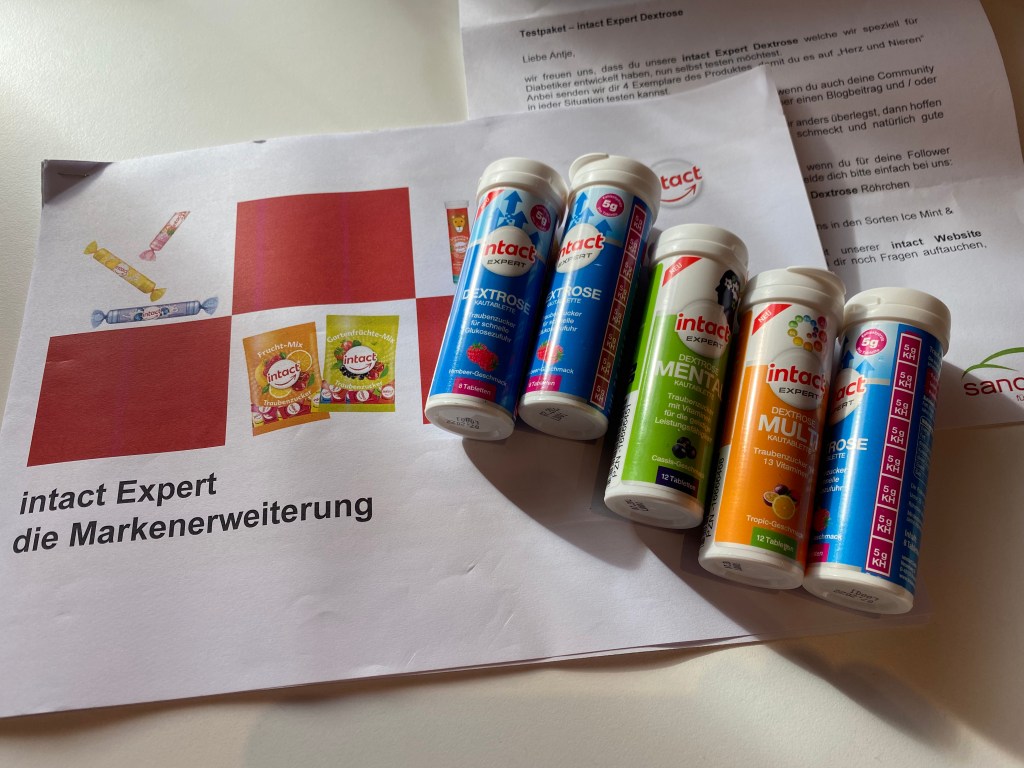 *Ich habe das Testpaket mit insgesamt 6 Röhrchen Traubenzucker unentgeltlich vom Unternehmen Sanotact erhalten. Mit der Lieferung waren keine besonderen Bedingungen verknüpft. Weder habe ich mich verpflichtet, überhaupt über meinen Test zu berichten, noch gab es Vorgaben, wie ich zu berichten habe. Auch mit den namentlich erwähnten Firmen DiaExpert und Diashop verbindet mich keine geschäftliche Beziehung. Dieser Beitrag spiegelt wie immer ausschließlich meine persönlichen Erfahrungen und Eindrücke wider.