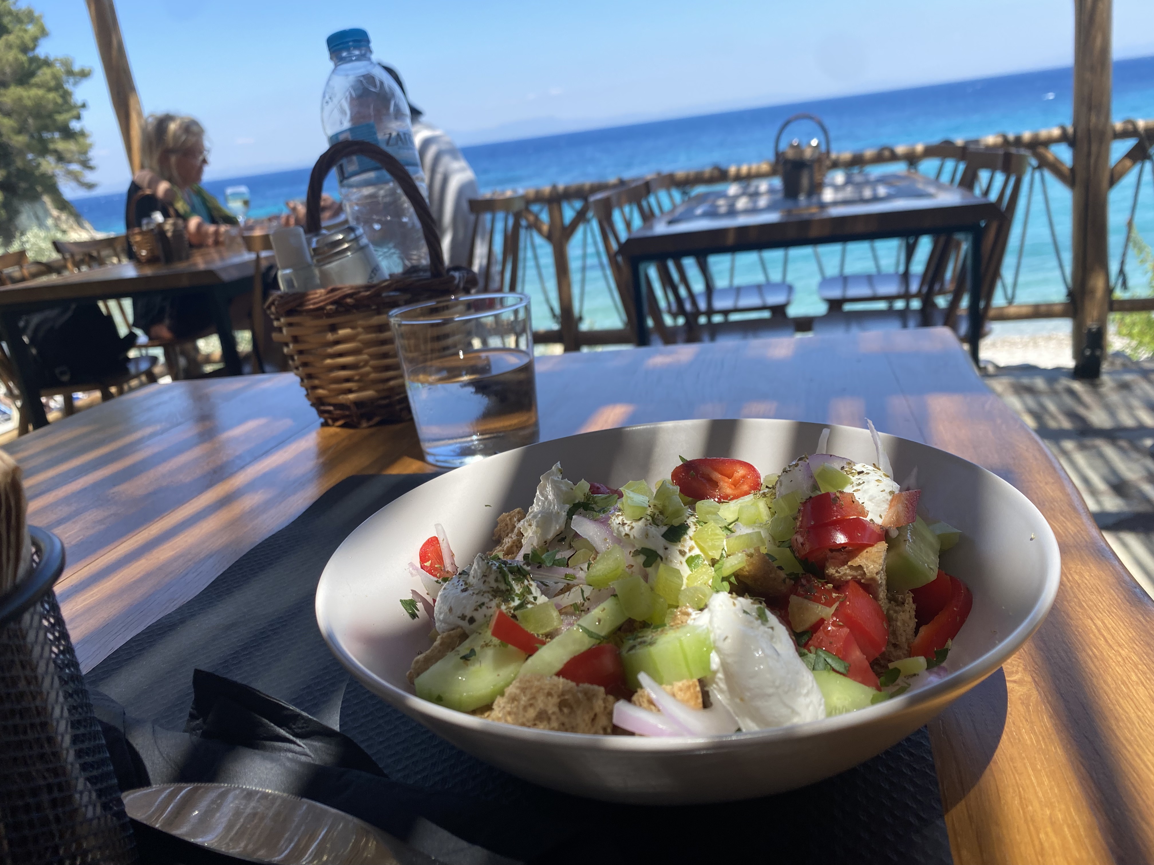 Wir waren schon einige Male auf Samos und mögen diese kleine Insel schon sehr. Wir sind allerdings eher in der Lemonakia Beach in Kokkari. Das Hotel in dem Du gewohnt hast, sieht wunderschön aus, dass muss ich mir gleich mal abspeichern! Es ist so ein bezauberndes Fleckchen Erde und wer weiß, vielleicht fliegen wir irgendwann wieder einmal hin. Den Spaß am Wandern und auch am Yoga kann ich total nachvollziehen, beides mag ich auch, mach es nur leider viel zu selten. Der Blick von der Taverne auf das Meer ist unschlagbar und dazu der Salat…SEUFZ!!