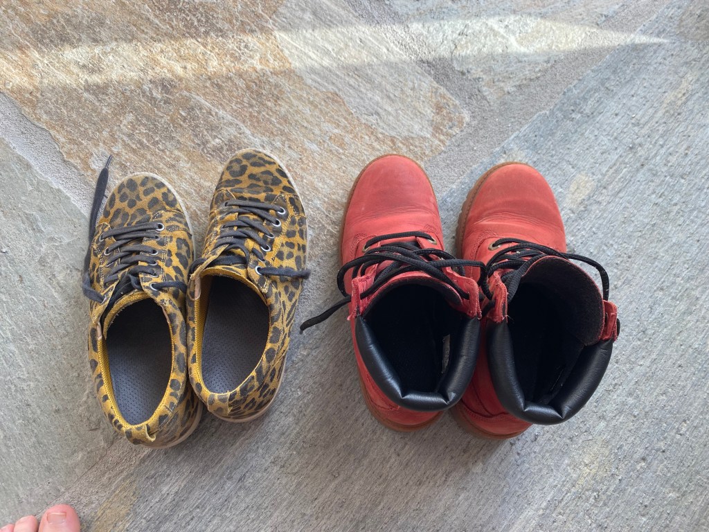 Ich hoffe, dass es mir gelingt, ein paar dieser Achtsamkeitsübungen in meinen Alltag rüberzuretten. Das würde mir durchaus guttun. Ein erster Anfang ist gemacht: Ich habe zum einen seit meiner Rückkehr täglich Yoga gemacht. Außerdem sind heute auch neue Wanderschuhe eingetroffen, die meine Timberlands Boots ersetzen sollen. Die haben mich nämlich gleich am ersten Wandertag im Stich gelassen: Ausgerechnet an der Ferse löste sich das Innenfutter, krumpelte sich zusammen und bescherte mir eine dicke Blase. Bei den nächsten Wanderungen trug ich notgedrungen normale Schnürschuhe – was überraschend gut funktionierte und mich in meiner generellen Haltung bestärkte, dass Spezial-Equipment in der Regel völlig überbewertet wird. Doch so ganz verkehrt sind ein stärkeres Sohlenprofil und ein stützender Schaft vermutlich doch nicht beim Wandern. Die nächste Tour kann also kommen! Shanti! Namaste!