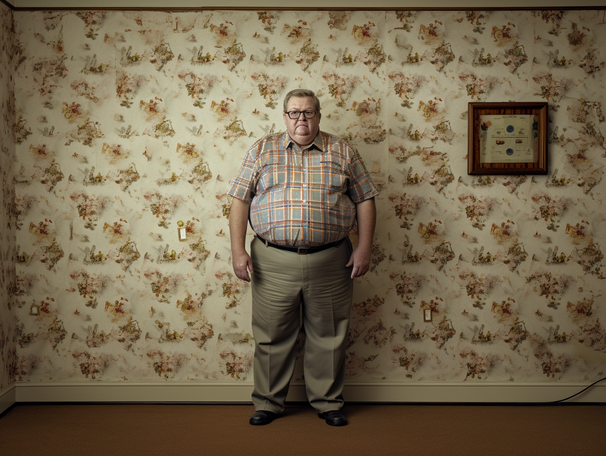 Lassen wir dieses Bild doch einmal auf uns wirken: Da steht ein dicker, grimmig blickender Mann, dessen Bauch deutlich über den Bund seiner unmodernen beigefarbeben Hose quillt. Seine Chancen für den ‚Sexiest Man Alive-Award‘ schätze ich eher gering ein. Überhaupt wirkt nichts an diesem Mann und seiner Umgebung irgendwie attraktivAd und ansprechend: Die beige-geblümte Tapete stammt eindeutig aus dem letzten Jahrhundert und hätte längst mal erneuert werden sollen. Doch vermutlich fehlt dem KI-generierten Mann der Elan für eine solche Aktion ebenso wie die Selbstdisziplin beim Essen und beim Sport. Oder was sind eure Gedanken, wenn ihr dieses Bild betrachtet? Ist es nicht gruselig, wenn KI auf diese Weise bekannte Stereotype verfestigt?