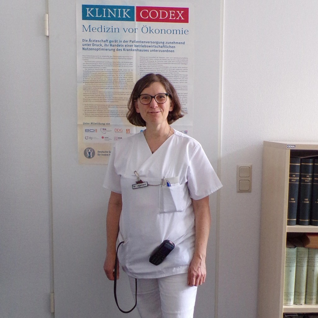 Die Internistin Dr. Sabine Jägemann arbeitet seit 2013 im Untersuchungsgefängnis und weiß diese Unabhängigkeit zu schätzen: „Ich kann hier ärztlich ziemlich frei walten.“ Anstelle drohender Regresse, wie sie Vertragsärztinnen ‚draußen’ permanent begleiten, muss sie allerdings jederzeit auf Post von den Anwältinnen der Gefangenen gefasst sein. „Manche versuchen, auf diese Weise Druck auf uns auszuüben. Es ist eine regelrechte Masche, die Haftbedingungen anzuprangern. Da werden oft die absurdesten Dinge behauptet“, erzählte sie. Nicht zuletzt aus diesem Grund wird akribisch auf eine lückenlose Dokumentation geachtet. „Ernstliche juristische Schwierigkeiten hatte ich zum Glück noch nie.“ Wenn Patient*innen unzufrieden sind, dann gilt ihr Unmut eher der Haft selbst als der medizinischen Betreuung. „Die Gefangenen sind hier gut versorgt, doch sie haben keine freie Arztwahl. Das muss man im Hinterkopf haben. Doch das sind Rahmenbedingungen, die ich nicht ändern kann. Daher nehme ich es nicht persönlich, wenn mal jemand schimpft“, meinte die Ärztin.