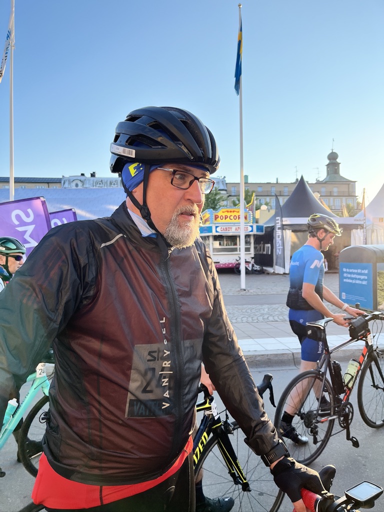 Nach meiner ganzen Long Covid-Geschichte sollte die Tour zu einem Höhepunkt werden. Große Erwartungen also. Allerdings hatte ich noch weitere Höhepunkte geplant, um wieder fit zu werden, weshalb ich nicht optimal trainierte. Ich konzentrierte mich erst mal auf den Haspa Halbmarathon, da ich Laufen als meine „Hauptsportart“ ansehe. Im Februar stieg ich also erstmals aufs Rad auf der Rolle und habe die ersten Kilometer abgespult. Irgendwann trafen wir drei uns dann zu einer Tour um die Schlei, die mir bestätigte, dass ich zu mindestens mithalten könnte. Da war mir noch nicht klar, dass die Strecke der Vätternrundfahrt in diesem Jahr leicht anders sein sollte…