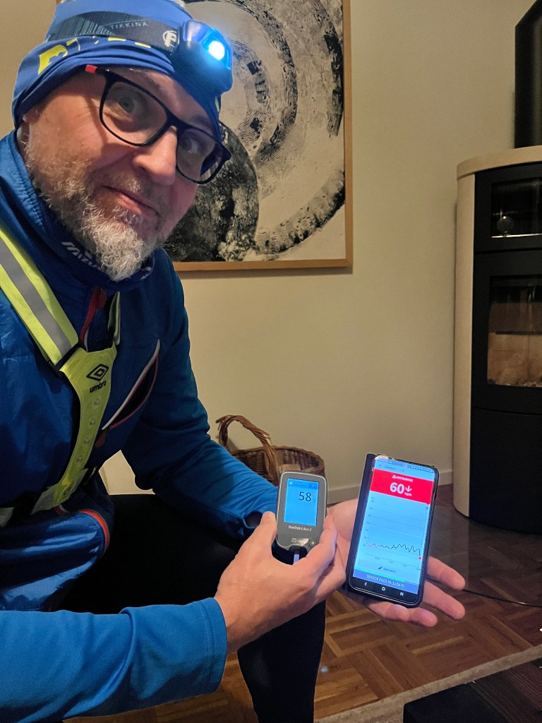 Vor gut einem halben Jahr bin ich vom Freestyle Libre 3 (FSL3) zum Dexcom G7 gewechselt. Und weil ich noch einen FSL3-Sensor übrig hatte, habe ich meinen Mann Christoph überredet, damit für 14 Tage seine Glukosewerte aufzuzeichnen. Was er für seine Ernährung und sein Training daraus lernen konnte, ist allerdings ziemlich überschaubar.