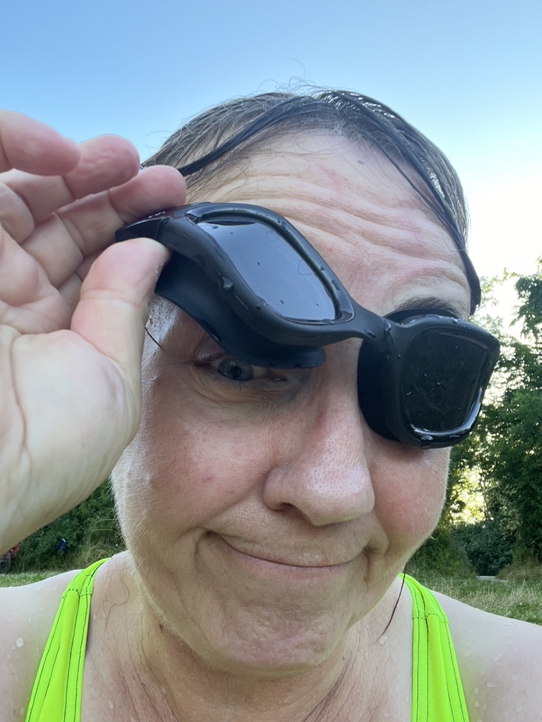 Doch zumindest für mich gibt es dann noch eine weitere Herausforderung, die mich am entspannten Ablesen meiner Glukosewerte hindert. Und zwar meine nachlassende Sehkraft. Ich bin seit meiner Jugendzeit kurzsichtig, kann also ohne Brille im Nahbereich scharf und in der Ferne nur unscharf sehen. Seit etlichen Jahren ist aber auch eine Altersweitsicht hinzugekommen, sodass ich mittlerweile eine Gleitsichtbrille trage. Damit ich beim Schwimmen nicht völlig ziellos durch die Gegend plansche, habe ich mir eine Schwimmbrille mit Sehstärke zugelegt – allerdings korrigiert sie lediglich meine Sehschwäche im Fernbereich. Vermutlich kann man sich beim Optiker auch Schwimmbrillen mit Gleitsichtgläsern anpassen lassen, doch Gleitsichtbrillen sind leider ein ziemlich teures Vergnügen, und so furchtbar viel gibt es unter Wasser ja auch nicht zu lesen. Bei Anbietern wie Watery, wo ich meine beiden Exemplare erstanden habe, gibt es eine ordentliche Schwimmbrille mit einfacher Sehstärke (in meinem Fall -5 Dioptrien) hingegen schon für 35 Euro – klare Empfehlung übrigens an dieser Stelle, falls ihr eine Schwimmbrille mit Sehstärke sucht. Ich kann also mit der transparenten Schwimmbrille im Hallenbad Bahnen ziehen und rechtzeitig z. B. andere Menschen erkennen, die mir entgegenkommen. Im Freiwasser kann ich mit der getönten Schwimmbrille beispielsweise sehen, wie weit ich mich vom Ufer entfernt habe und wo ich dort meine Tasche abgestellt habe. Wenn ich mit einer meiner Schwimmbrillen aber das Display meiner Apple Watch genau ablesen möchte, muss ich erst zumindest ein Glas der Schwimmbrille lüpfen und mir die Uhr nah vor das freie Auge halten. Ansonsten bleiben die Ziffern und Zahlen unscharf.