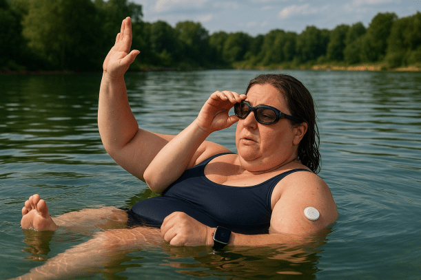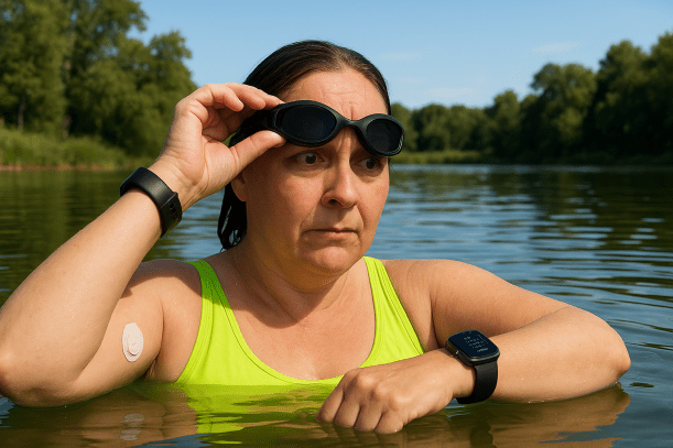 Eigentlich ist es beim Sport ja eine super Sache, wenn CGM-Sensor und Smartwatch eine direkte Verbindung haben, ohne dass das Smartphone in der Nähe ist. Beim Schwimmen kann ich damit trotzdem nicht so einfach mal eben nach den Glukosewerten schauen. Das liegt an Bluetooth, Brustschwimmen, Eigenheiten der Apple Watch und meiner nachlassenden Sehkraft.