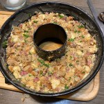 Ich versuche ja, möglichst wenig Lebensmittel wegzuwerfen. Deshalb wandern harte Brotkanten bei uns nicht in den Müll, sondern trocknen im Brotkasten vor sich hin, bis wir genug beisammen haben für Semmelknödel. Besonders einfach gelingen die, wenn man sie nicht in Wasser gart, sondern im Ofen in einer Gugelhupfform backt.